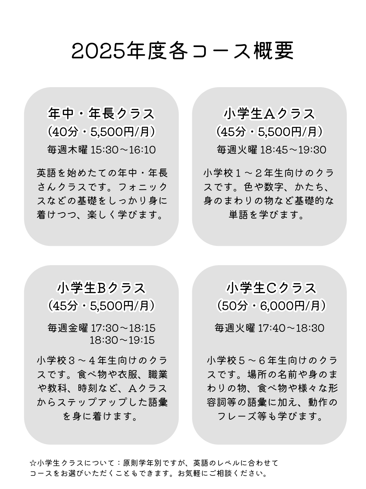 *教材費別途 (年間3,000~5,000円程度)
